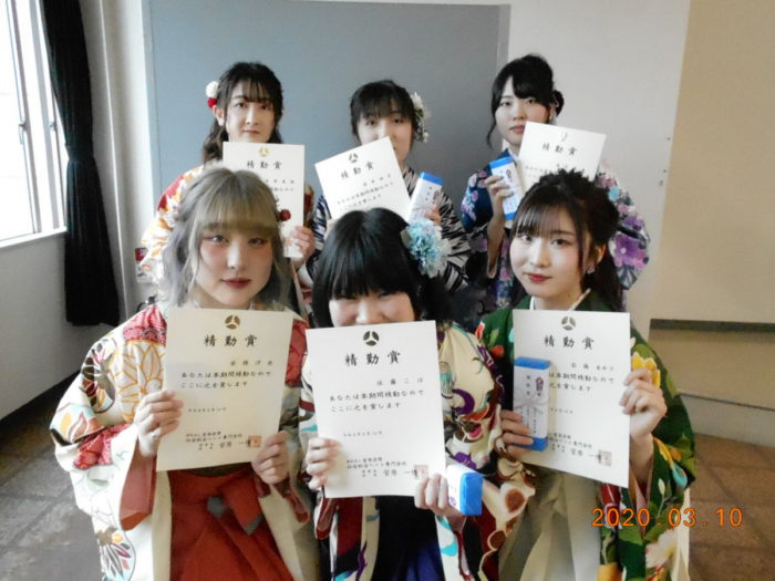 そして本来であれば代表の学生が横浜で開催される本部展に参加する予定だったのですが今回のコロナウイルスのため大会が延期となってしまいました。本部展のために頑張って練習していた代表の石橋さんと安積さんにクラスアドバイザーから特別賞を授与いたしました☆