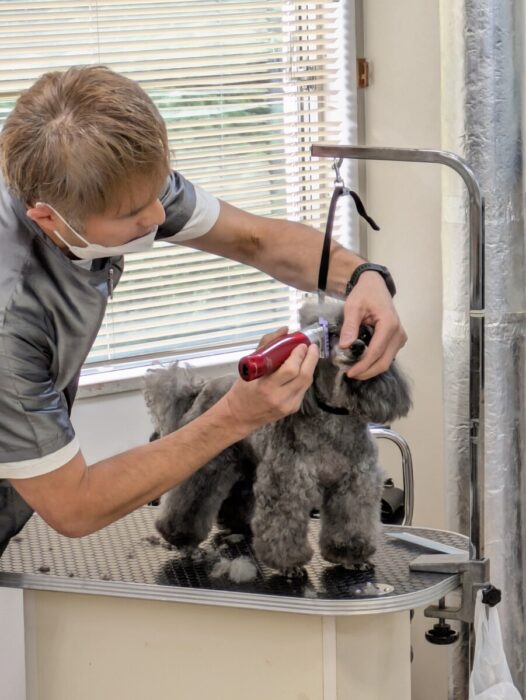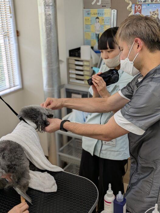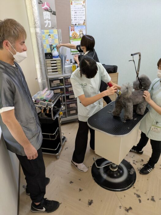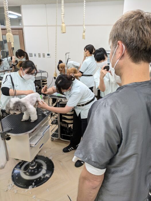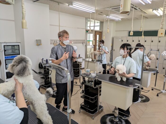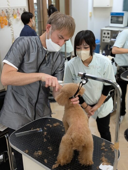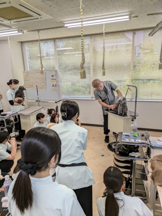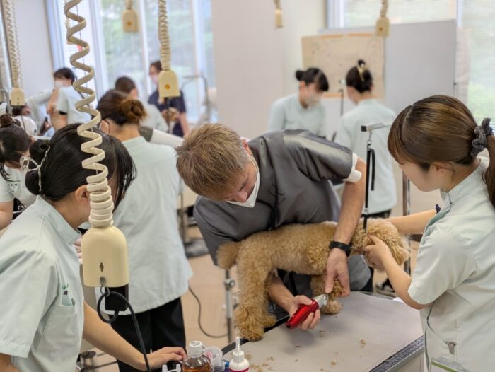 国内の様々なトリミングコンテストや、アメリカのトリミングコンテストで優勝をされており、Instagramや全国各地でセミナーを開催するなど、トリミングについて情報を発信されている有名な方のご指導を実習形式で受けられるのは、学生にとって大変貴重な時間でした(^^