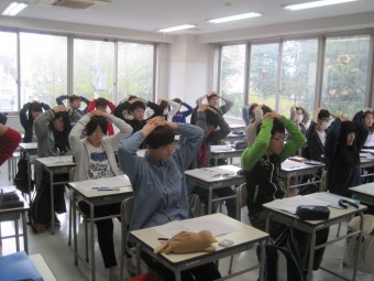 と、いうことで実際に揺れが起きた際に取る速やかな行動を実践!