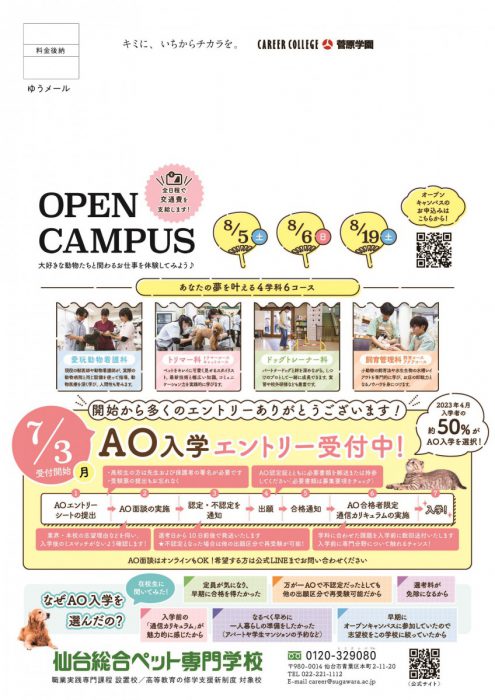 仙台総合ペット専門学校の8月のオープンキャンパスの日程はこちら!
