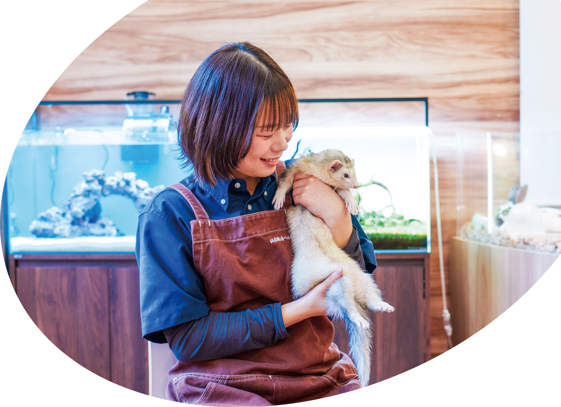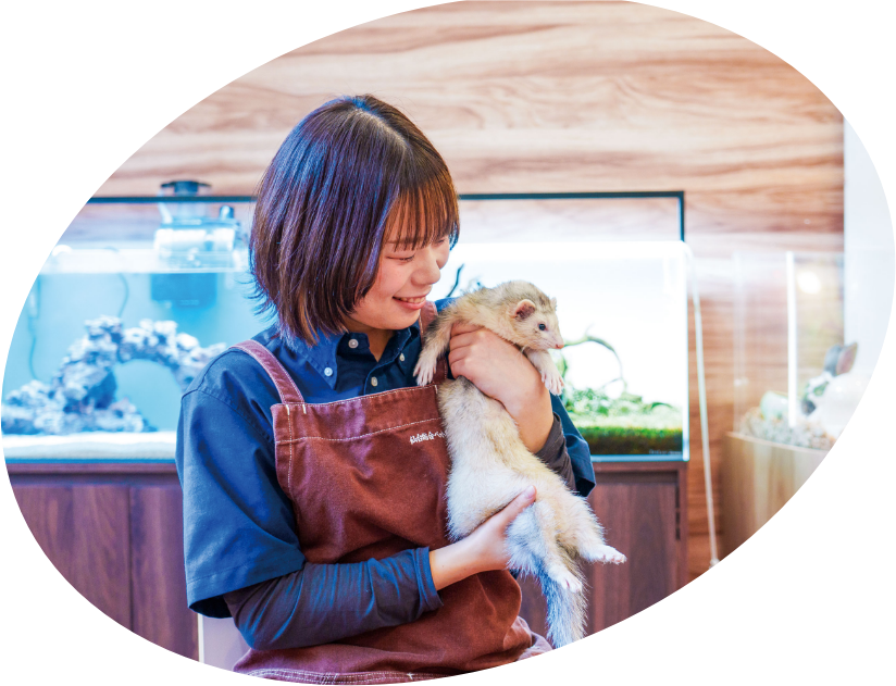 小動物実習室、アクアリウム実習室、爬虫類実習室、アニマルカフェ実習室など多様な実習室を完備。飼育管理から展示・接客まで、業界で求められる力を養います。