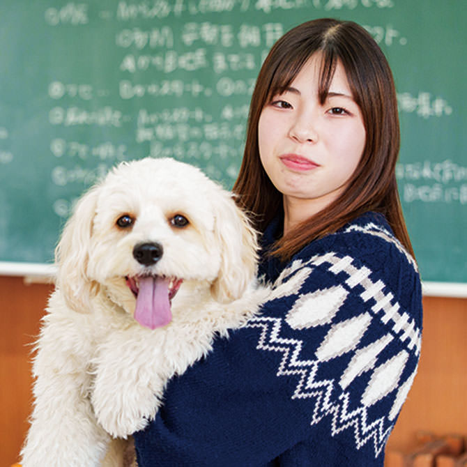 2年間の学びを通じて、知識だけでなくコミュニケーションの取り方など多くのことを学びました。内定先を志望した理由は、実際にインターンシップでトレーナーさんからお話を聞き、自分の目指すべき姿と一致したからです。就職後は人と犬がストレスフリーに楽しく生活できるよう、犬それぞれに合わせたトレーニングを行っていきたいです。